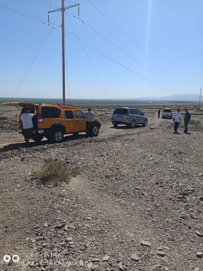 施工中,項目組面臨各種施工難點,如施工地段處于戈壁灘,由于雨水的沖刷,無施工道路;施工地處沙漠戈壁灘,風(fēng)沙極大,對施工人員眼睛及呼吸系統(tǒng)傷害大;沙漠中施工,中午溫度相當(dāng)高等。項目組成員針對施工困難,采取相應(yīng)措施,如使用鏟車進(jìn)行施工便道維修工程,現(xiàn)場備足足夠的水,配備常規(guī)防中暑藥物等克服遇到的困難,按照施工計劃順利施工。