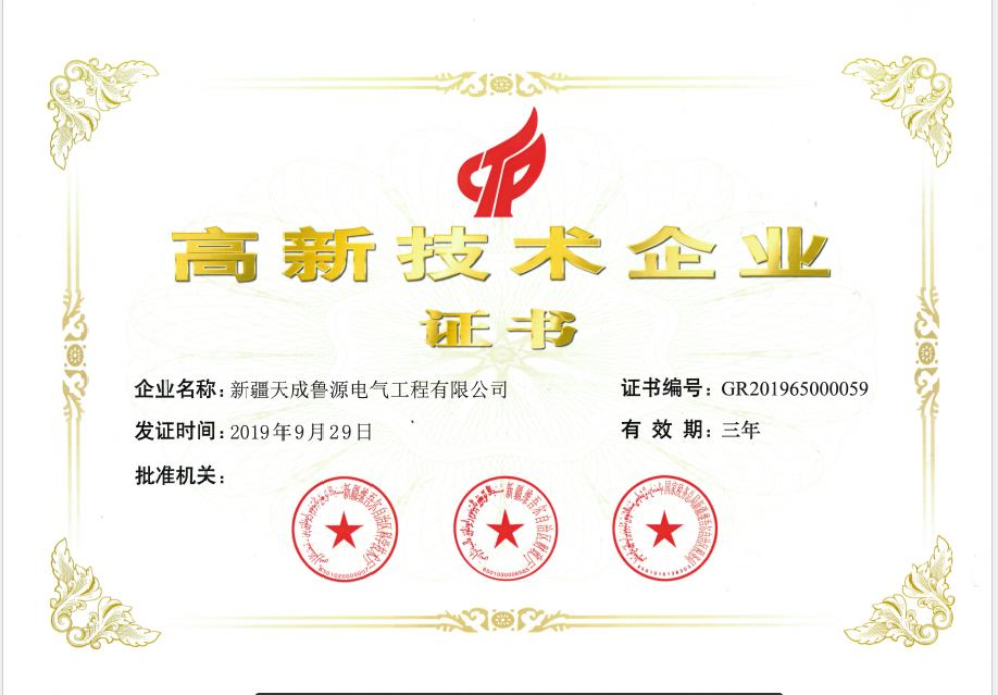 天成魯源公司順利通過高新技術(shù)企業(yè)復(fù)審認定并獲取新證書